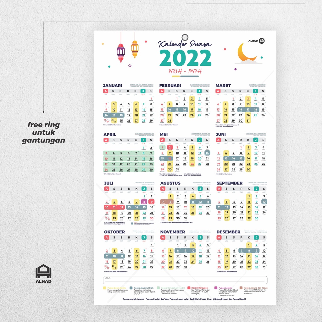 . Jadwal Puasa 2022 dan Lebaran 2022 pada 1 Ramadhan 1443 Hijriyah Lengkap dengan Puasa Sunnah Senin-Kamis dan Ayyamul Bidh. Kalender Islam yang penting untuk dicatat pada Tahun 2022 lengkap dengan Hari Tanggal Masehi Tanggal Hijriyah dan Peristiwa. Oleh karena itu Kalender Muslim 2022 hanya memberikan gambaran tentatif dari tanggal Islam yang akan datang karena permulaan setiap bulan bergantung pada penampakan bulan.